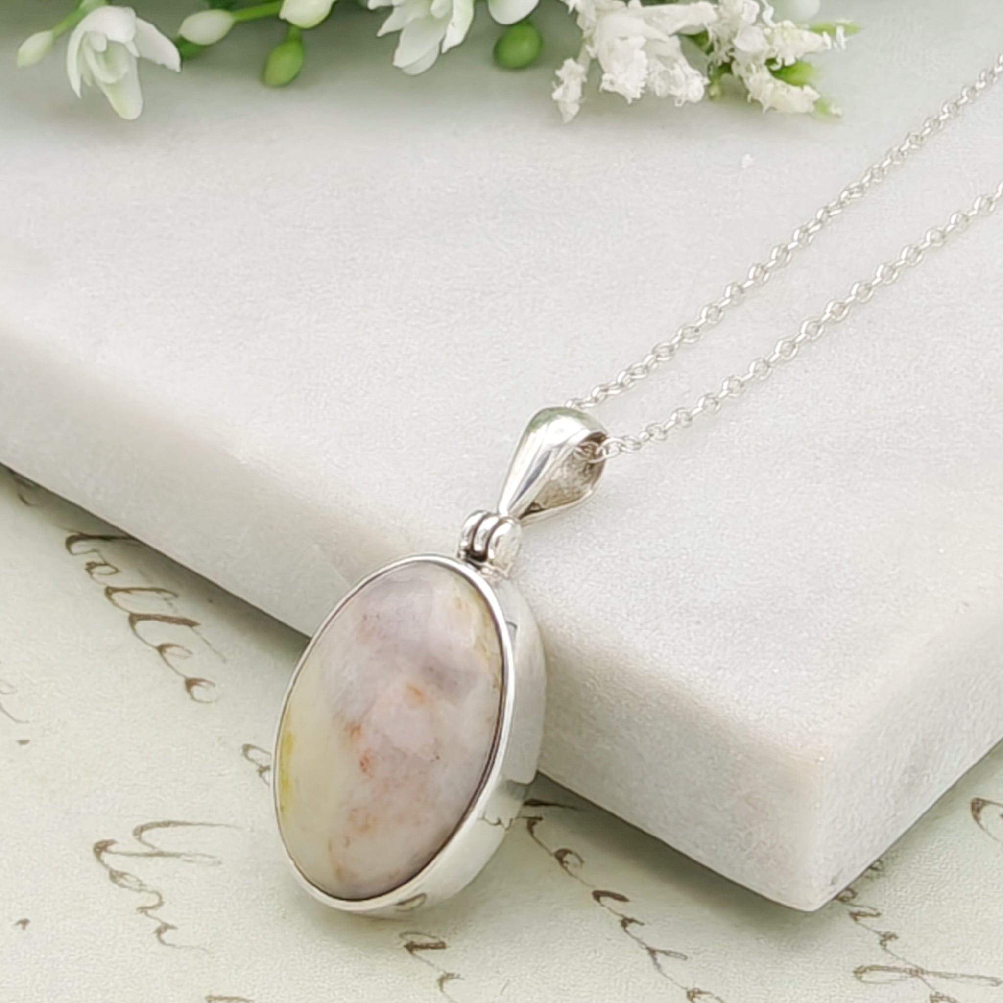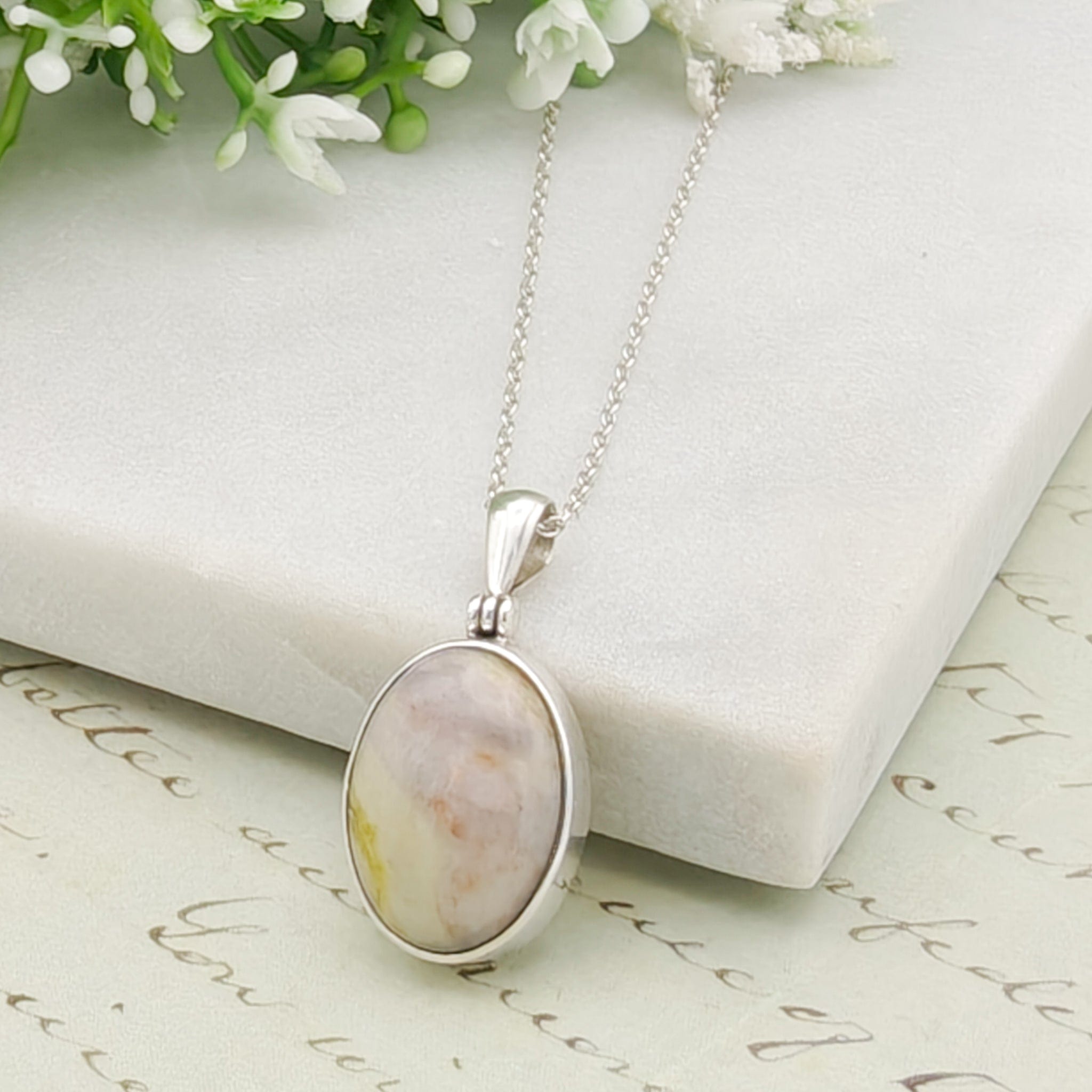 Isle of Skye Marble Pendant | Scottish Gift | 18mm Oval Stones | Sterling Silver