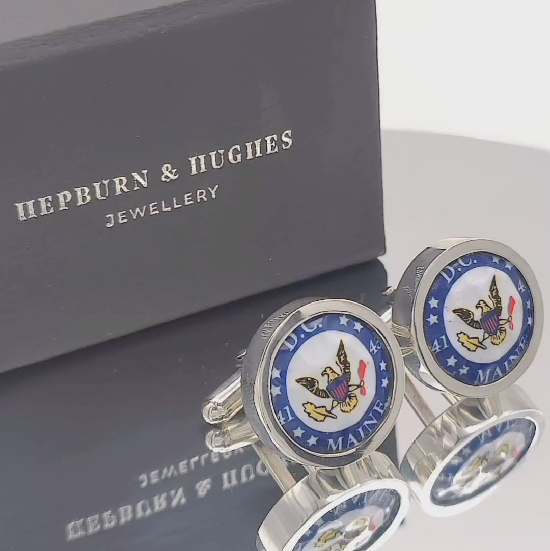 These sports themed cufflinks are made using an American golf ball and set in Sterling Silver. A unique gift for golf fans. Available in a choice of styles, just select from the drop-down menu.