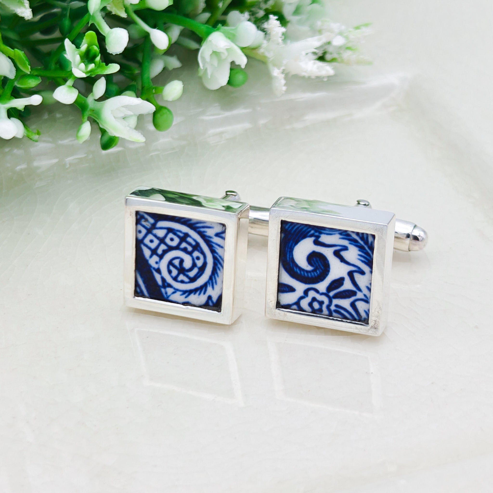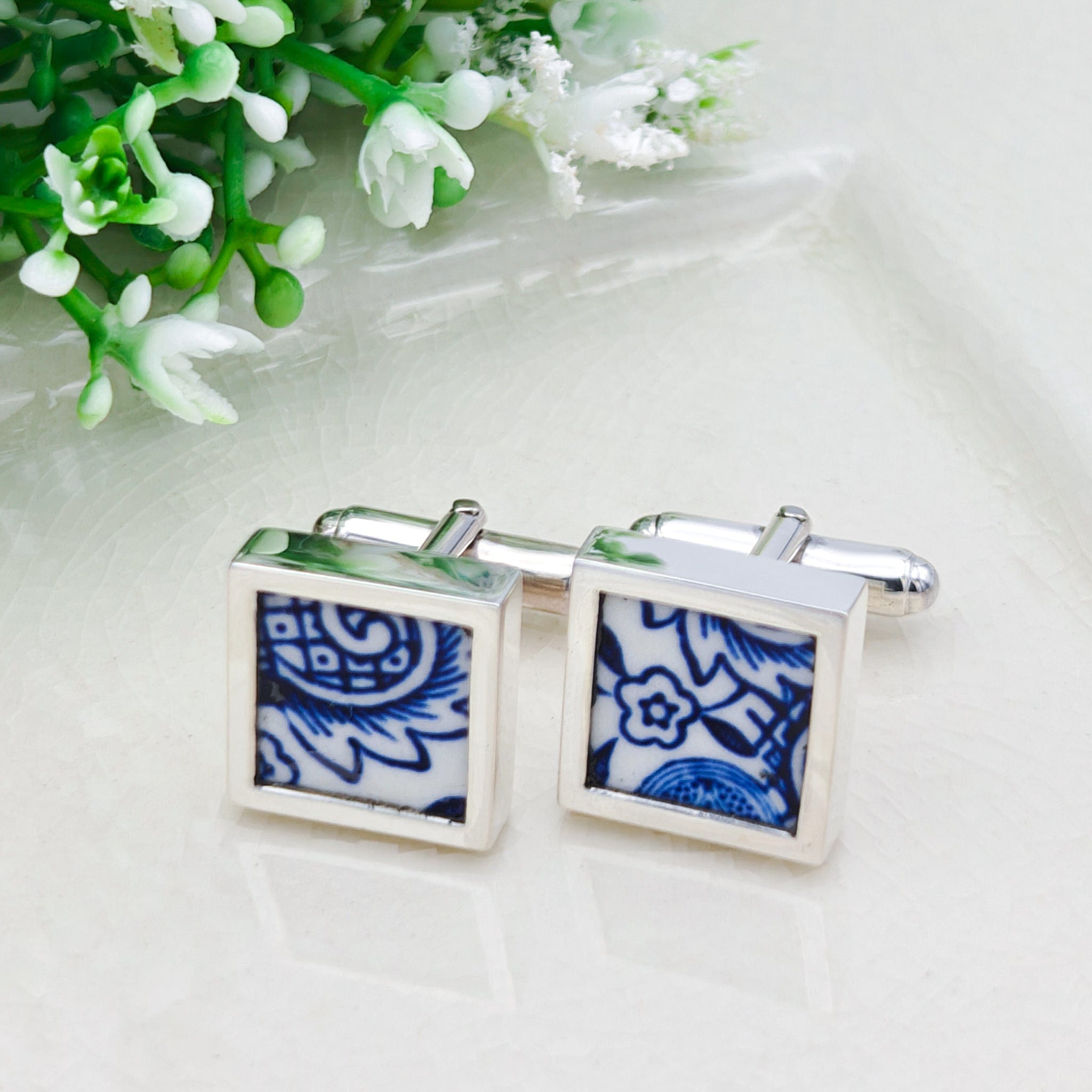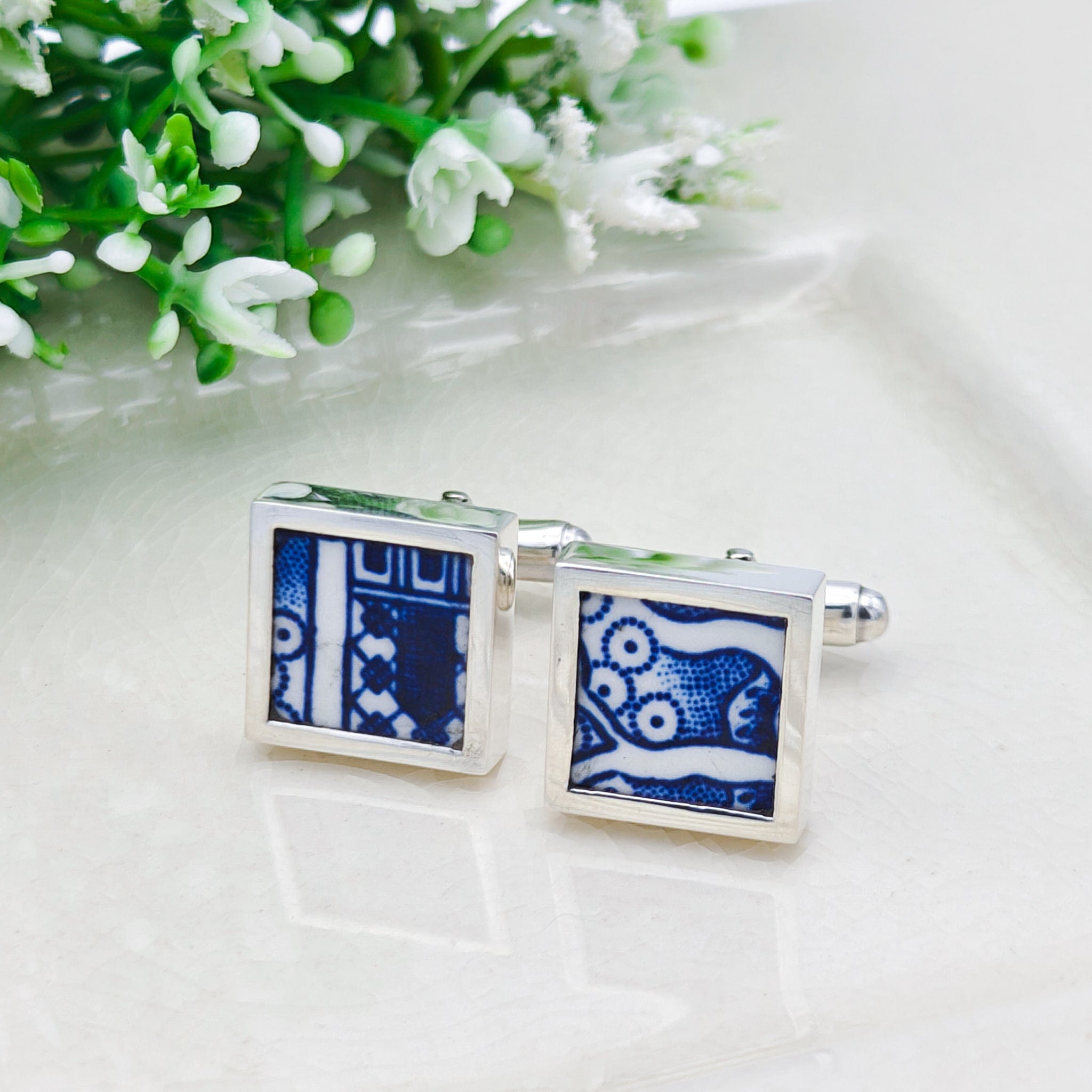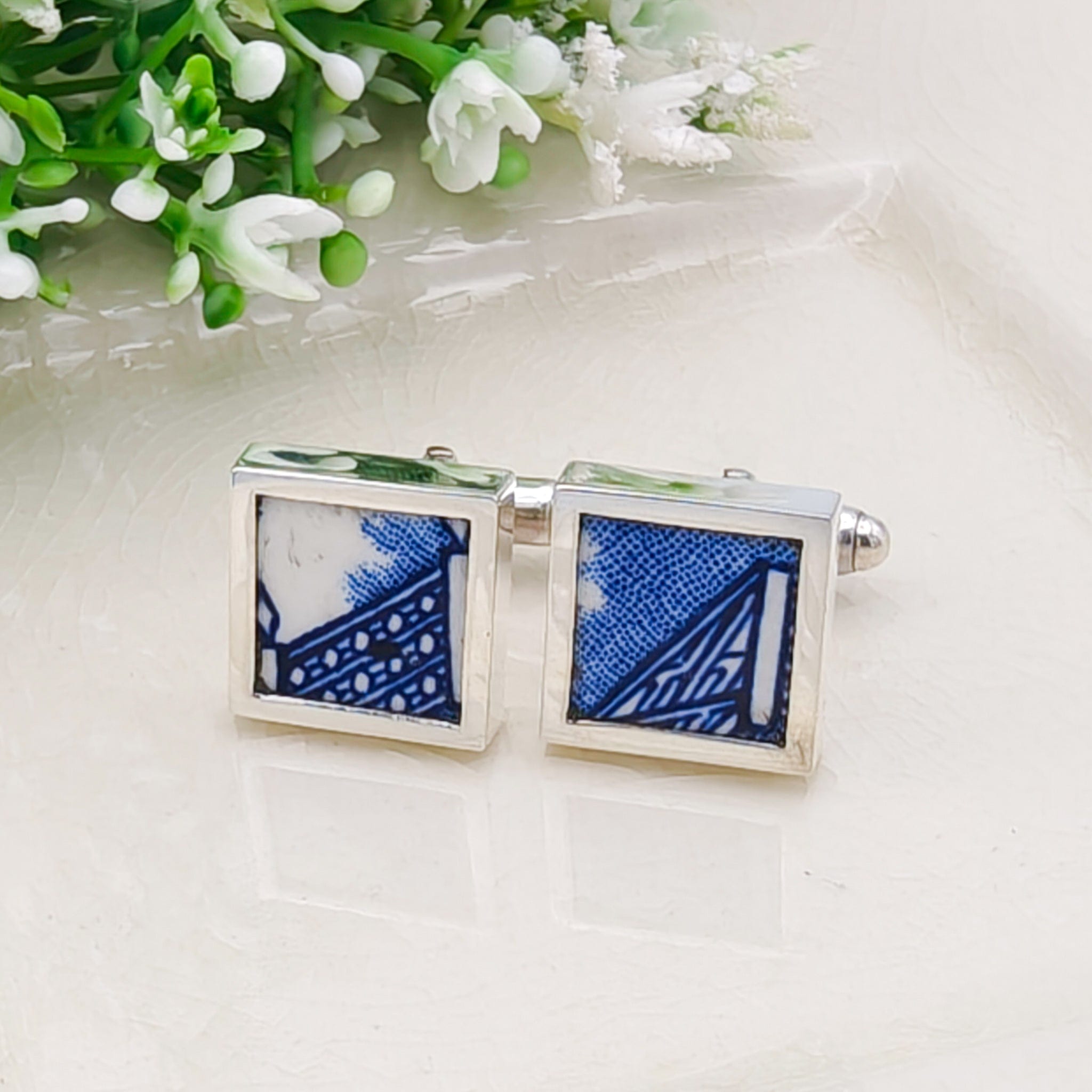 Minton Pottery Cufflinks | Willow Pattern | 9th Anniversary | Sterling Silver