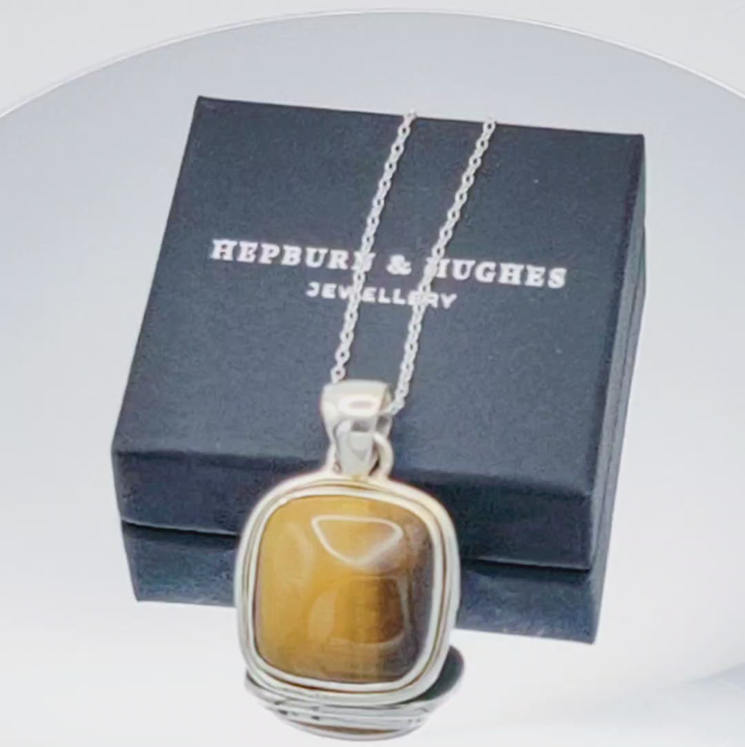 This Tigers eye pendant is made using a stunning piece of polished Tigers Eye, shaped into an attractive square design, displaying the renowned sheen and striping of this special quartz.