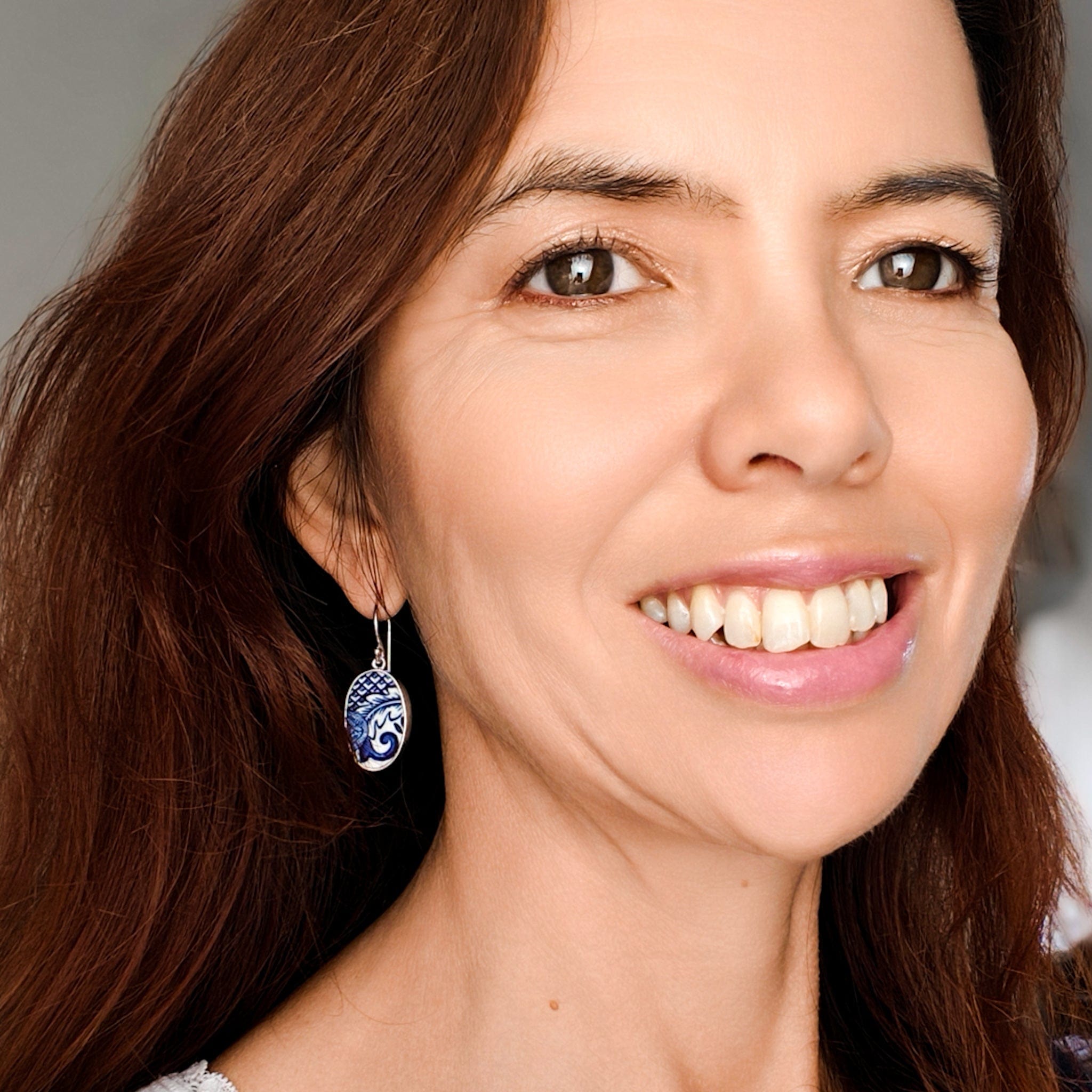 Upcycled fragments of Minton Blue Willow Pattern pottery make for unique ceramic earrings in stunning sterling silver. The product is a perfect choice for a 9th wedding anniversary gift, as both pottery and willow hold traditional significance.