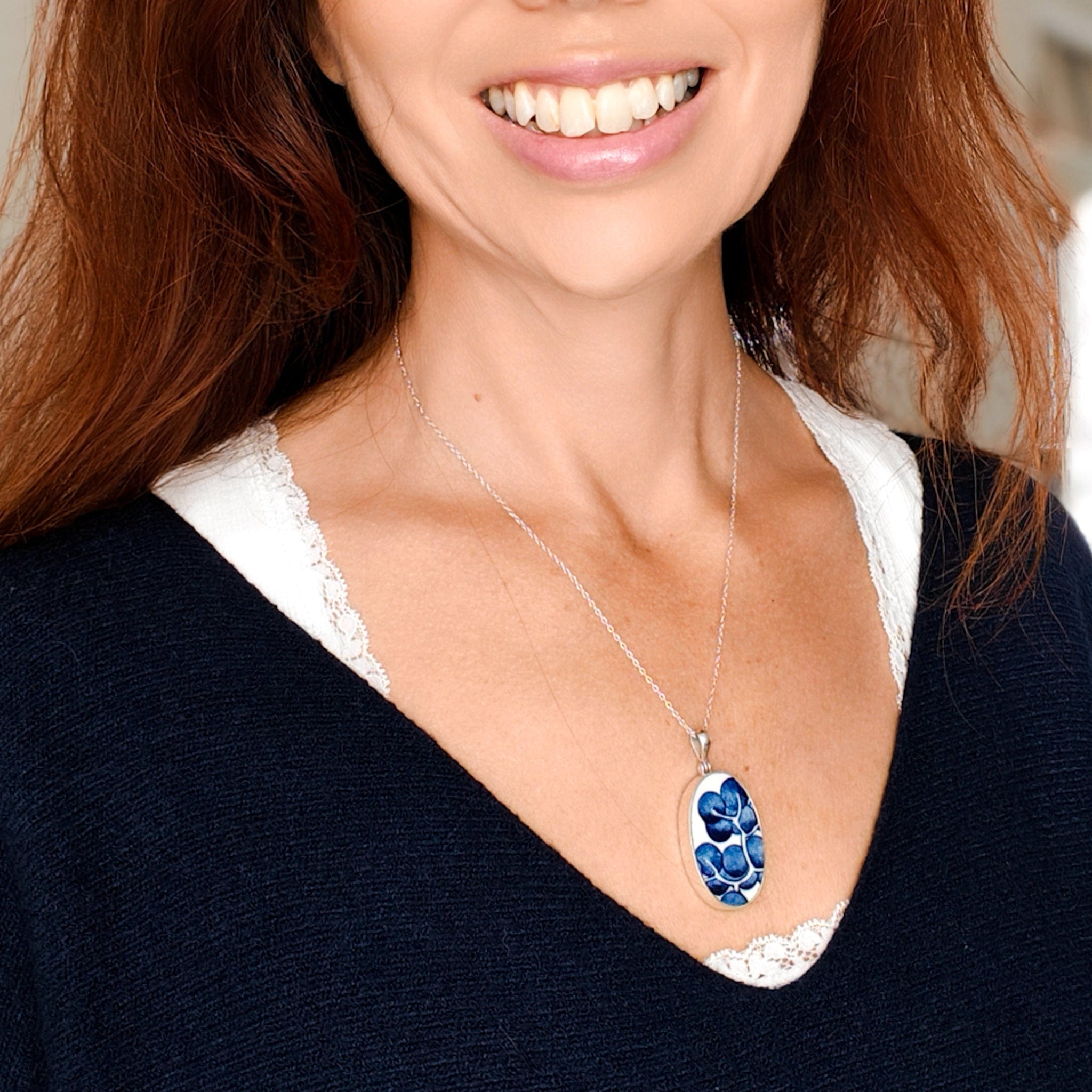 Minton Pottery Ceramic Pendant | 30mm Oval | Upcycled Blue Willow | Sterling Silver