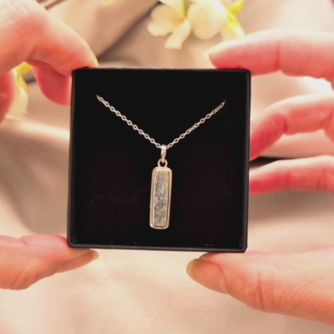 Meteorite Pendant | Space Gift | 20mm Rectangular | Sterling Silver