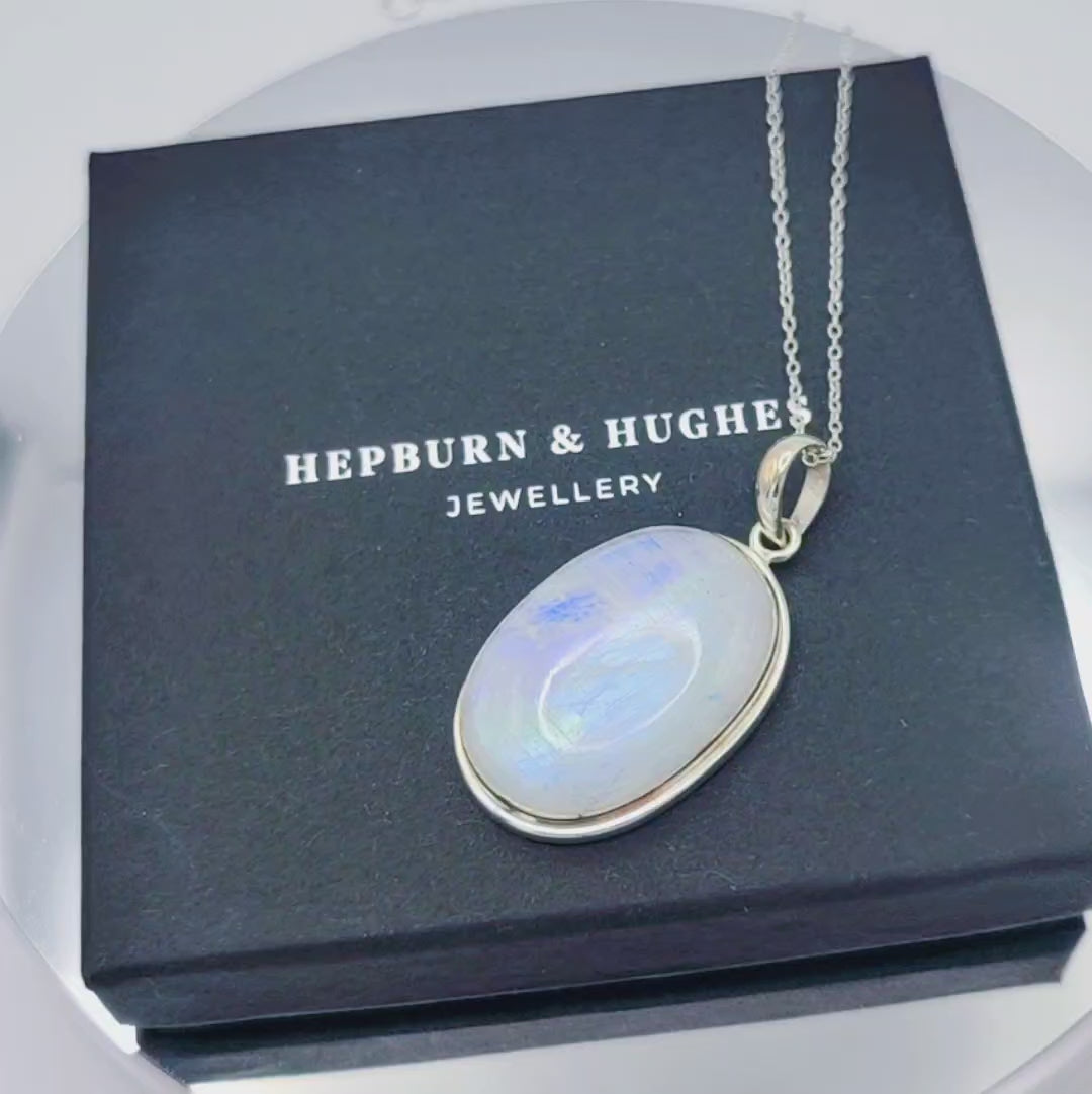 Rainbow Moonstone Pendant | 30mm Oval Gemstone | June Birthstone | Sterling silver