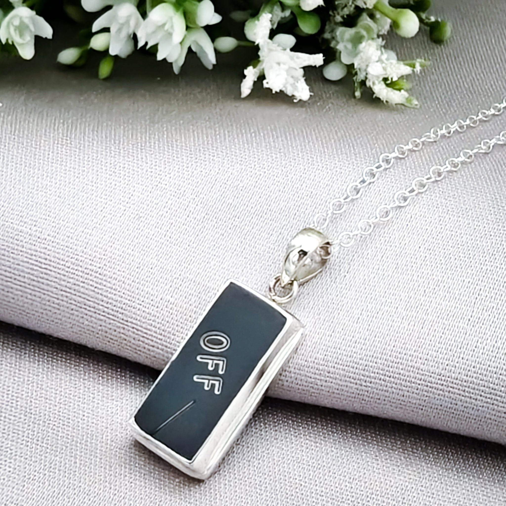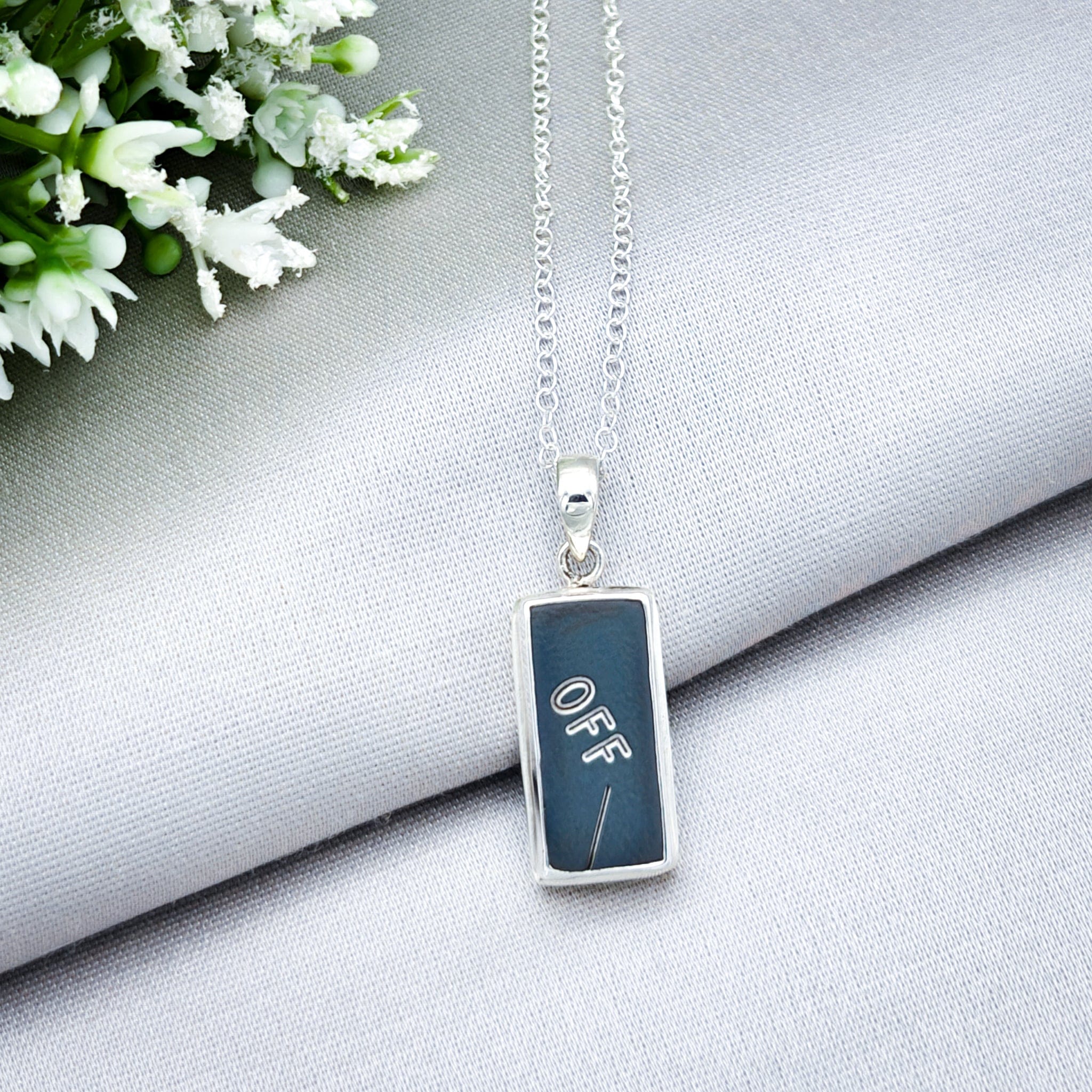 Each Concorde pendant is individually made from a Concorde Flight Deck and Cabin Heat Regulation Panel which housed a wide range of essential switches and dials, manufactured by Lucas Aerospace in July 1979. It is then set in a double bezel sterling silver frame to make a striking pendant.