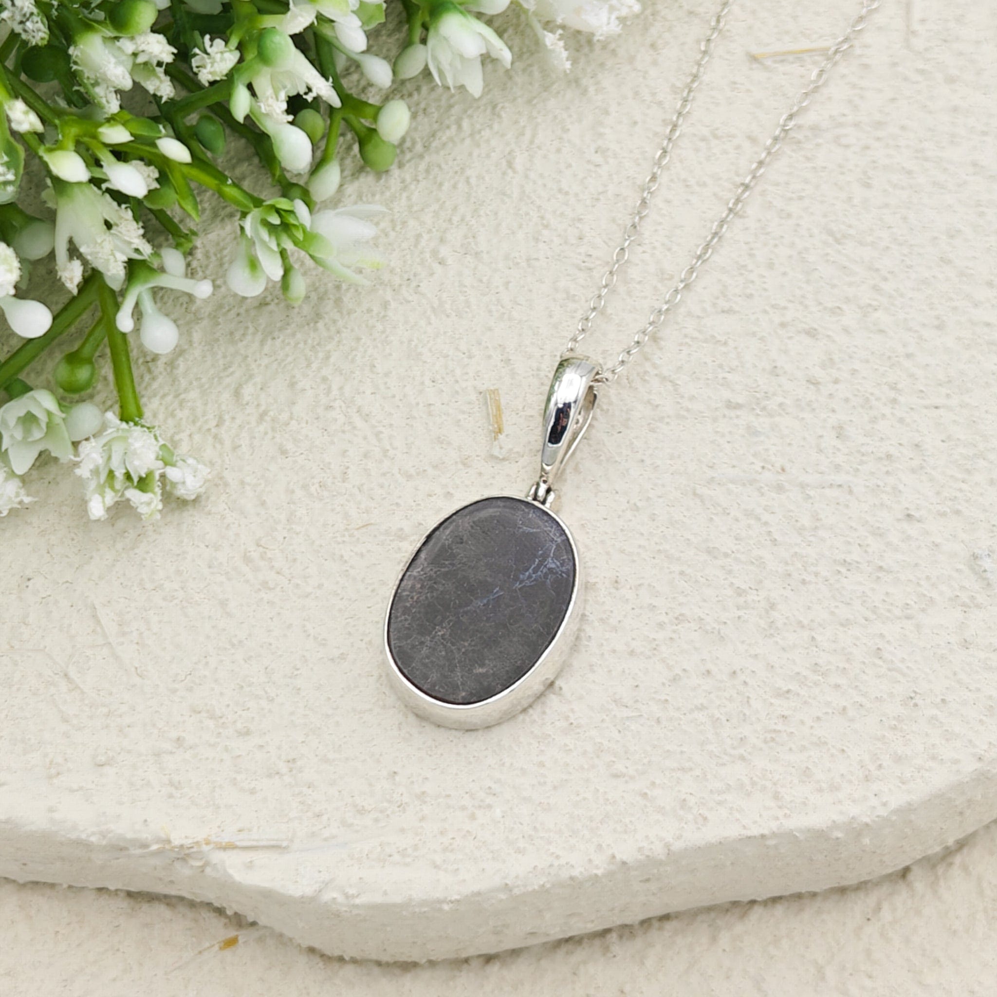 Dinosaur Bone Pendant | Fossilised Iguanodon | Medium Oval | Sterling Silver