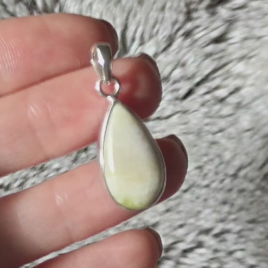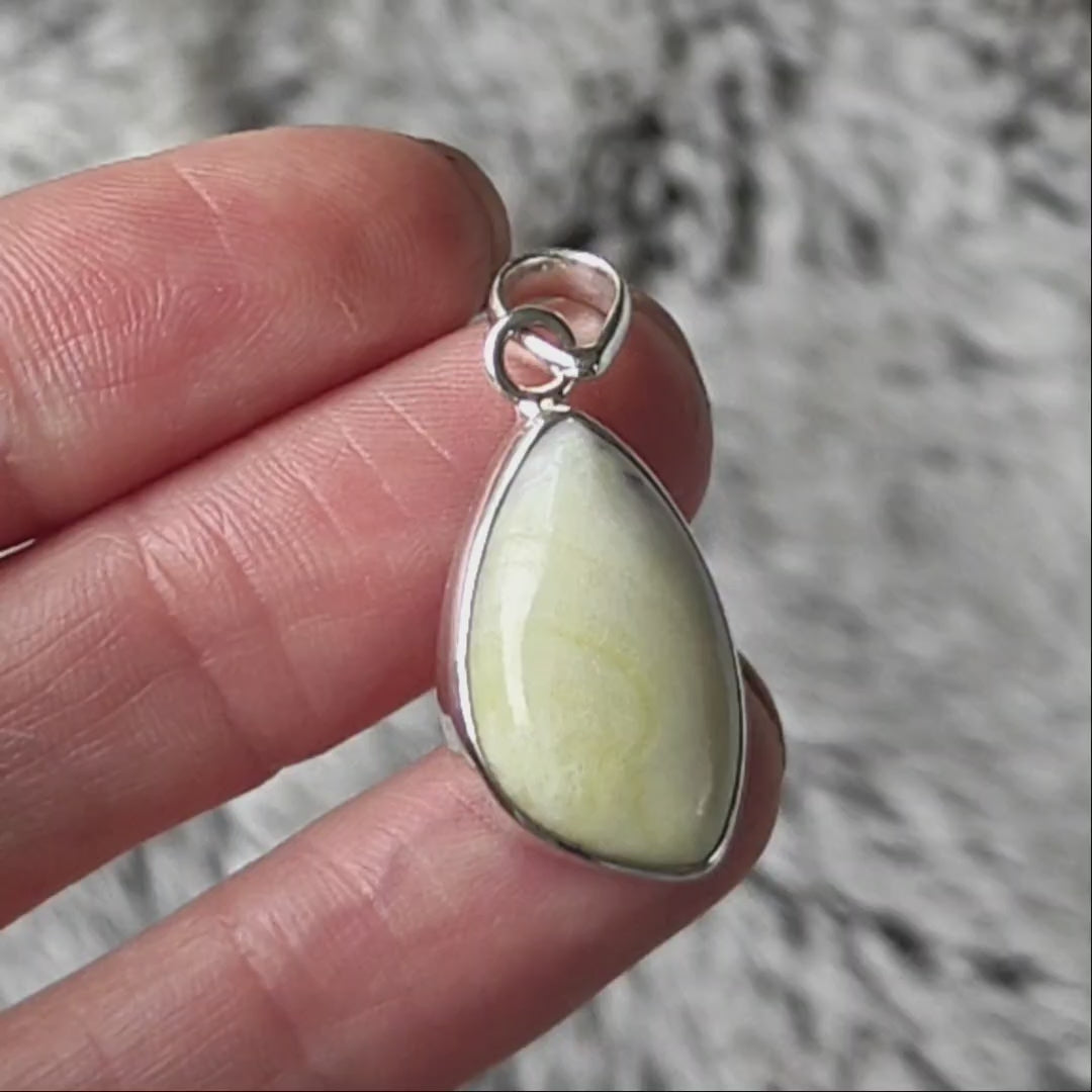 A stunning Isle of Skye Marble pendant, featuring a banded pale green stone with striking markings, in 925 sterling silver.