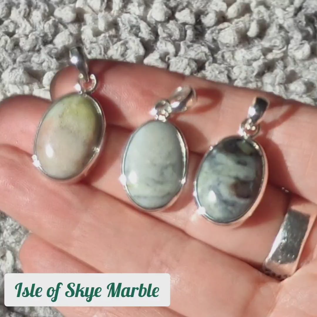 Isle of Skye Marble Pendant | Scottish Gift | 18mm Oval Stones | Sterling Silver