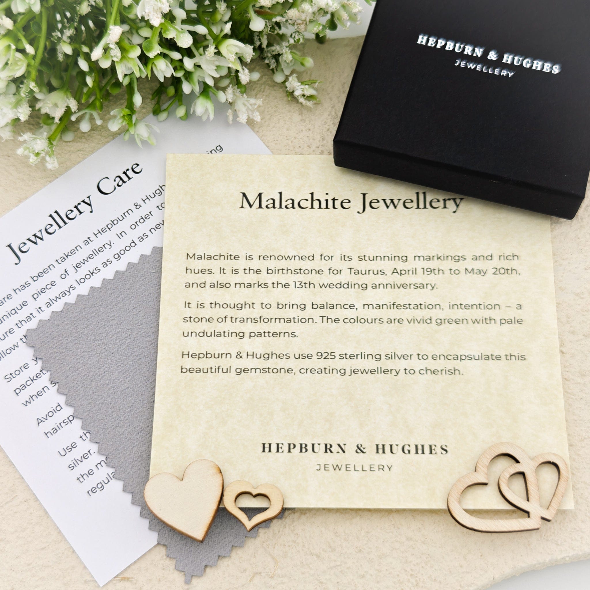 Our full Malachite collection includes cufflinks, pendants and earrings and why not read our Malachite blog to learn more about this wonderful gemstone.